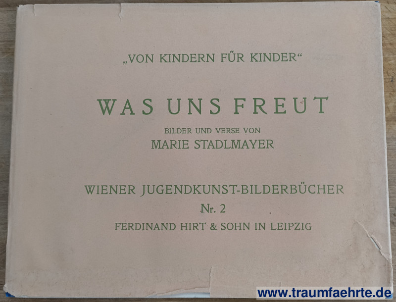 Alte Bücher etc. > Kinderbücher > Bilderbücher vor 1945Stadlmayer, Marie: Was uns freut. [ Permalink ]>>> Artikel-Nr: 34207 <<< Leipzig, Hirt & Sohn 1924 (0 Wiener Jugendkunst-Bilderbücher Nr. 2), mit 6 farb. Tafeln der Autorin, 8 Blatt, Vorwort von Prof. F. Cisek, farb. Gemusterte Vorsätze, farb. Illustr. OHLn., Quer-Folio Zustand: Name und Namenstempel auf Vorsatzblatt, Vorderdeckel etwas gebräunt, Einbandkanten etwas berieben Preis: 680,00 €