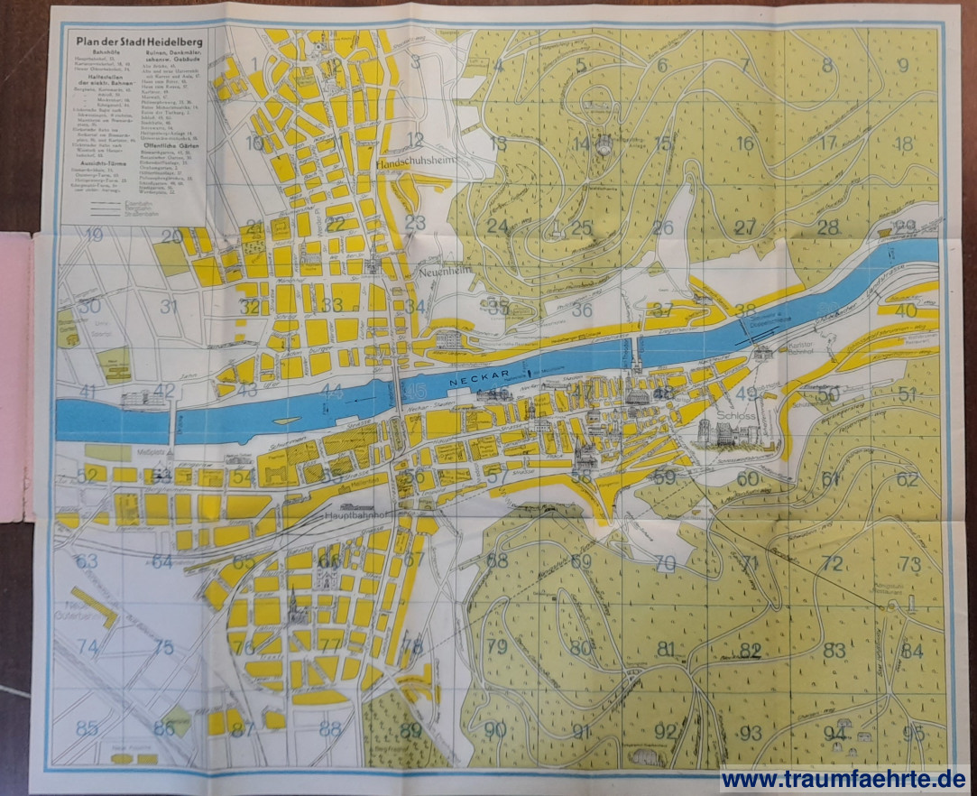 Alte Bücher etc. > Landkarten > Stadtpläne & Atlanten DeutschlandStadtplan von Heidelberg. [ Permalink ]>>> Artikel-Nr: 34455 <<< Heidelberg, Brausdruck GmbH ca. 1950, vierfarbiger, ausklappbarer Plan, 36 x 40 cm in Orig.-Umschlag Zustand: Umschlag etwas randrissig Preis: 10,00 €