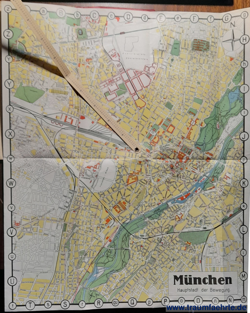 Alte Bücher etc. > Landkarten > Stadtpläne & Atlanten DeutschlandBlitzführer durch München der Hauptstadt der Bewegung. Neuester Stadtplan mit Zeiger im Plan. [ Permalink ]>>> Artikel-Nr: 35672 <<< München, Seyferle ca. 1935, ausklappbarer, farb. Plan ( 38 x 44 cm), 23 S. Straßenverzeichnis, Informationen, OKart. Zustand: kleiner Namenstempel auf 1. Seite Preis: 28,00 €