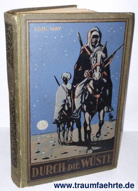Alte Bücher etc. > Kinderbücher > Jugend & AbenteuerMay, Karl: Durch die Wüste. Reiseerzählung. [ Permalink ]>>> Artikel-Nr: 38949 <<< Radebeul, Karl-May-Verlag, 1939 (= Karl May’s Gesammelte Werke Band 1), Hermesmeier GW 1.33; 32. Auflage, 271.–300. Tausend; 634 S., zwei Seiten Verlagswerbung, farb. ill. OLn. mit Goldprägung, 8°, modernere Karte „Durch die Wüste. Reiseweg.“ beiliegend Zustand: Einband berieben, Goldprägung verblasst, Seiten minimal fleckig, etwas schiefgelesen, Datumseintrag und -stempel und hinten (25.01.1940 bzw. 26.08.1940) Preis: 28,00 €