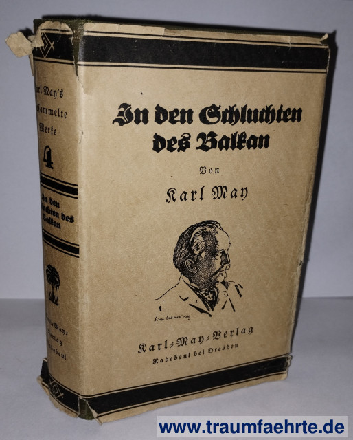 Alte Bücher etc. > Kinderbücher > Jugend & AbenteuerMay, Karl: In den Schluchten des Balkan. Reiseerzählung. [ Permalink ]>>> Artikel-Nr: 38952 <<< Radebeul, Karl-May-Verlag, 1937 (= Karl May’s Gesammelte Werke Band 4), Hermesmeier GW 4.26; 185.–207. Tausend; 607 S., eine Seite Verlagswerbung, farb. ill. OLn. mit Goldprägung, 8° in Originalschutzumschlag Zustand: Schutzumschlag randrissig (siehe Bild), Einband unten etwas bestoßen Preis: 65,00 €