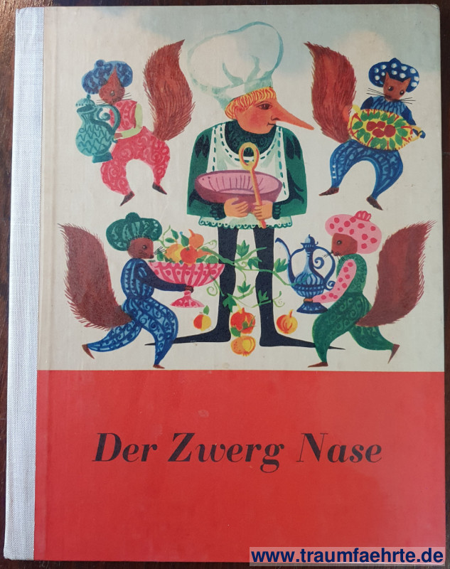 Alte Bücher etc. > Kinderbücher > Bilderbücher nach 1945Hauff, Wilhelm: Der Zwerg Nase. Ein Märchen. Nacherzählt von Gertrud Neumann-Hechler. [ Permalink ]>>> Artikel-Nr: 39068 <<< Leipzig, Herbert Schulze 1964, EA, mit farb. Illustrationen von J. Hellgrewe, 14 Blatt, farb. illustr. OHLn., gr. 8° Zustand: gut erhalten, minimal fleckig Preis: 12,00 €