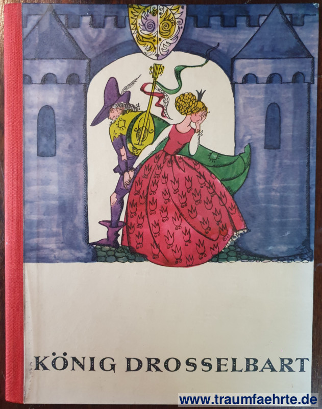 Alte Bücher etc. > Kinderbücher > Bilderbücher nach 1945Gebrüder Grimm: König Drosselbart. Das alte Märchen der Brüder Grimm. [ Permalink ]>>> Artikel-Nr: 39069 <<< Leipzig, Herbert Schulze 1963, 2. Aufl., mit farb. Illustrationen von Jutta Hellgrewe, 11 Blatt, farb. illustr. OHLn., gr. 8° Zustand: Einbandfolie hinten beschädigt, insgesamt gut erhalten Preis: 26,00 €