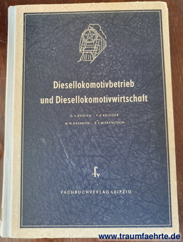 Alte Bücher etc. > Fahrzeuge > SchienenfahrzeugeRylejew, G. S. / Krjuger, P. K. / Kasakow, W. N. / Wilkewitsch, B. I.: Diesellokomotivbetrieb und Diesellokomotivwirtschaft. [ Permalink ]>>> Artikel-Nr: 39092 <<< Leipzig, Fachbuchverlag 1956, aus dem Russischen übersetzt durch das Übersetzerkollektiv Martius – v. Vietinghoff unter technischer Beratung von Ing. Hermann Gose (Original: Moskau 1951), 373 S., 3 S. Verlagswerbung, mit zahlreichen Tabellen und Abbildungen, OHLn., gr. 8° Zustand: Einband etwas berieben, Stempel auf Vorsatz, Stempel/Beschriftung auf Titelblatt und Rücken überklebt Preis: 24,00 €