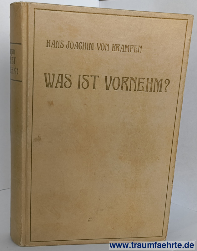 Alte Bücher etc. > Geschichte > Kultur- & SittengeschichteKrampen, Hans Joachim von: Was ist vornehm? Vom Herzens- und gesellschaftlichen Takt. Neu bearbeitet von Max Schievelkamp. [ Permalink ]>>> Artikel-Nr: 39131 <<< Berlin, Dr. P. Langenscheidt 1922, 16.–20. Tsd., 323 S., 3 Blatt Verlagswerbung, OLn. Zustand: Einband minimal fleckig, Einbandecken minimal bestoßen Preis: 15,00 €