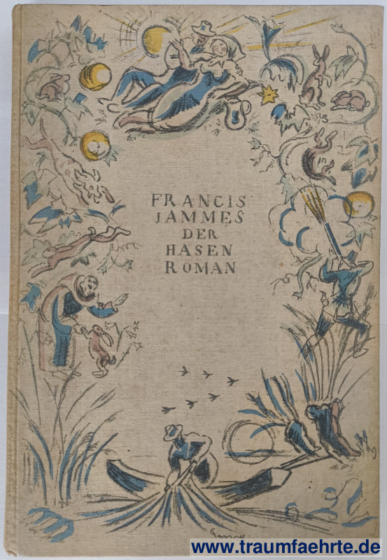 Alte Bücher etc. > Belletristik > Romane & ErzählungenJammes, Francis: Der Hasenroman. [ Permalink ]>>> Artikel-Nr: 39136 <<< Berlin, Kurt Wolff 1916, übertragen von Jakob Hegner, mit Lithographien und Einbandvignette von Richard Seewald, 74 S., farb. illustr. OLn. Zustand: Einband leicht verschmutzt Preis: 19,00 €