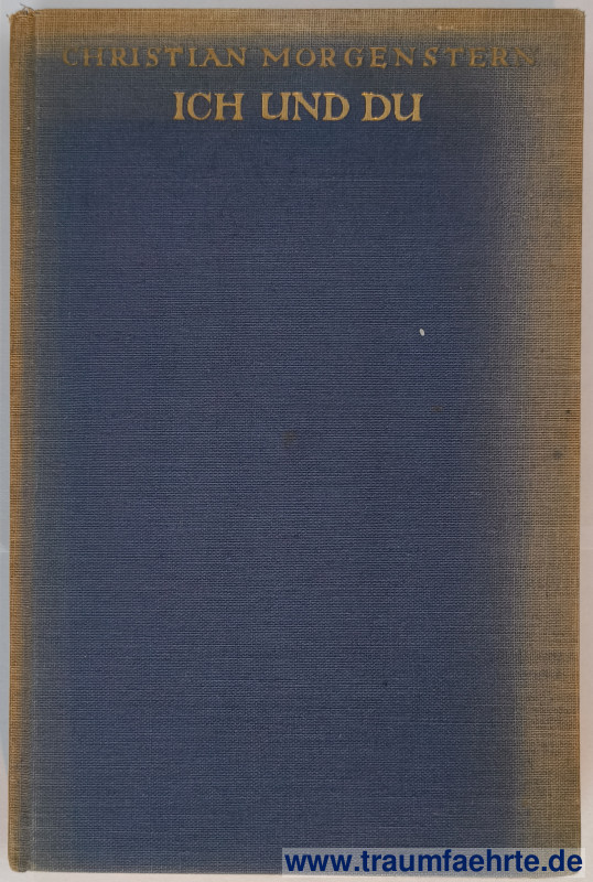 Alte Bücher etc. > Belletristik > Gedichte & DramenMorgenstern, Christian: Ich und du. Sonette. Ritornelle. Lieder. [ Permalink ]>>> Artikel-Nr: 39163 <<< München, R. Piper & Co. 1938, 25.–26. Tsd., 83 S., 2 Blatt Verlagswerbung, goldgeprägt. OLn. Zustand: Einband angerändert, Widmung auf Vorsatz und Schmutztitel Preis: 8,00 €