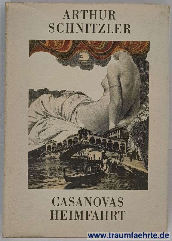 Alte Bücher etc. > Belletristik > Romane & ErzählungenSchnitzler, Arthur: Casanovas Heimfahrt. Novelle. [ Permalink ]>>> Artikel-Nr: 39194 <<< Berlin, Verlag der Nation 1986, 2. Aufl., mit 10 Collagen von Klaus Noeske und Nachwort von Ingeborg Harnisch, 133 S., goldgeprägt. OLn. mit farb., von Klaus Noeske und Hans-Joachim Schauß illustr. OU, gr. 8° Zustand: Schutzumschlag etwas angeschmutzt, sonst schönes Exemplar Preis: 14,00 €
