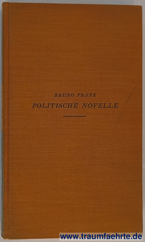 Alte Bücher etc. > Deutsche Erstausgaben > VerschiedenesFrank, Bruno: Politische Novelle. [ Permalink ]>>> Artikel-Nr: 39207 <<< Berlin, Ernst Rowohlt 1928 EA, WG II, 32, 179 S., 1 Blatt Verlagswerbung, OLn. Zustand: Einband leicht fleckig Preis: 10,00 €