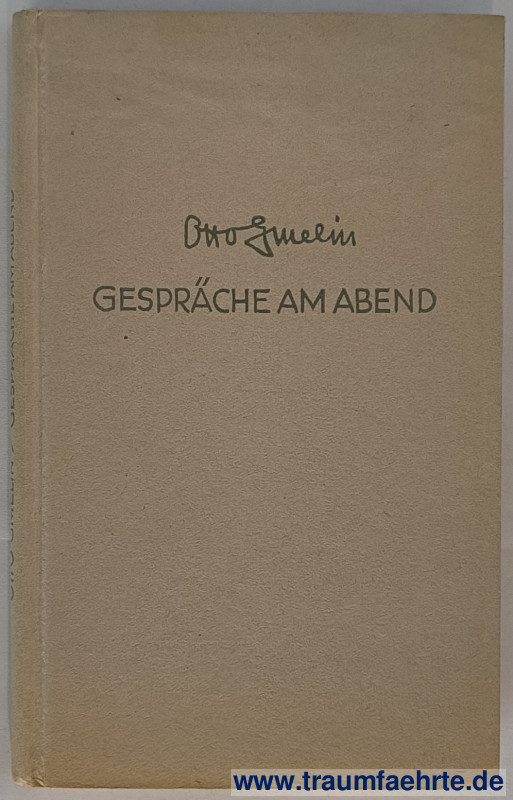 Alte Bücher etc. > Deutsche Erstausgaben > VerschiedenesGmelin, Otto: Gespräche am Abend. Aus dem Tagebuch des Andreas Thorstetten. [ Permalink ]>>> Artikel-Nr: 39208 <<< Jena, Eugen Diederichs 1941 EA, 1.–10. Tsd., WG II, 30, 95 S., 2 Blatt Verlagswerbung, OPp. Zustand: leichter Wasserschaden oben Preis: 9,00 €