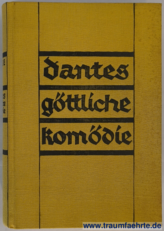Alte Bücher etc. > Belletristik > Gedichte & DramenHasse, Else: Dantes Göttliche Komödie. Das Epos vom inneren Menschen. Eine Auslegung. [ Permalink ]>>> Artikel-Nr: 39222 <<< München, Josef Kösel & Friedrich Pustet 1929, 5. Aufl., mit Titelbild; VIII, 519 S., gelber OLn. Zustand: Einband etwas verschmutzt, Textausschnitt zu Dantes göttliche Komödie auf Vorsatz geklebt Preis: 18,00 €