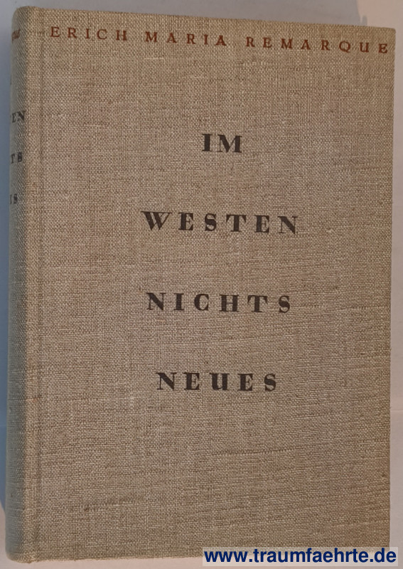 Alte Bücher etc. > Belletristik > Romane & ErzählungenRemarque, Erich Maria: Im Westen nichts Neues. [ Permalink ]>>> Artikel-Nr: 39243 <<< Berlin, Propyläen 1929, Originalfassung der Erstausgabe ein Jahr zuvor, 326.–350. Tsd., 287 S., OLn. Zustand: ordentliches Exemplar mit minimal verschmutztem Vorsatz Preis: 22,00 €