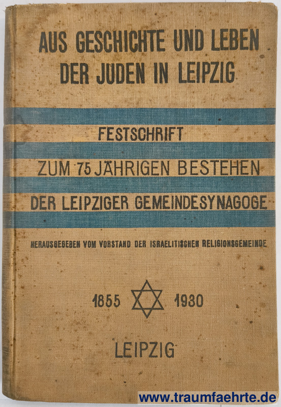 Alte Bücher etc. > Religion > JudaicaVorstand der Israelitischen Religionsgemeinde (Hrsg.): Aus Geschichte und Leben der Juden in Leipzig. [ Permalink ]>>> Artikel-Nr: 39277 <<< Leipzig, 1930, mit Abbildungen, 88 S., OLn. Zustand: Widmung (von 1934) auf Vorsatzblatt, Einband mit Wasserschaden Preis: 48,00 €