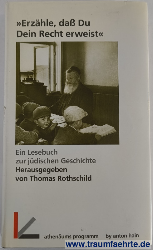 Alte Bücher etc. > Religion > JudaicaRothschild, Thomas (Hrsg.): „Erzähle, dass Du Dein Recht erweist.“ Ein Lesebuch zur jüdischen Geschichte. [ Permalink ]>>> Artikel-Nr: 39295 <<< Frankfurt am Main, Hain 1992 (= Athenäums Programm), 343 S., schwarzer OPp. mit mehrfarbig., illustr. OU, gr. 8°, ISBN 3-445-08574-9 Zustand: ordentliches Exemplar Preis: 6,00 €