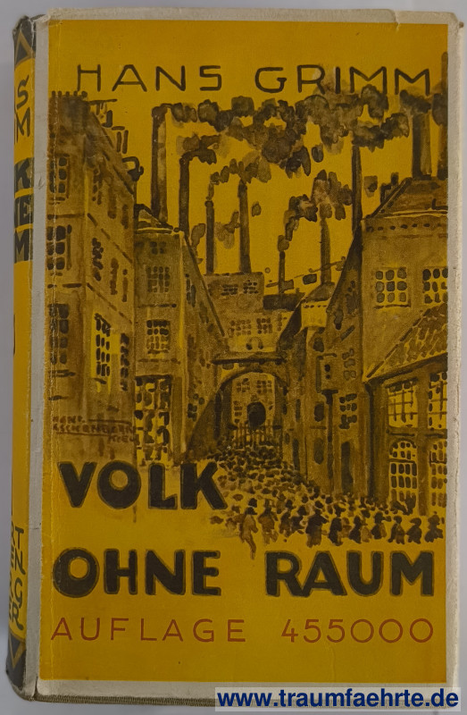 Alte Bücher etc. > Belletristik > Romane & ErzählungenGrimm, Hans: Volk ohne Raum. Ungekürzte Ausgabe in einem Band. [ Permalink ]>>> Artikel-Nr: 39305 <<< München, Albert Langen / Georg Müller ca. 1930, 366.–390. Tausend, 1299 S., 2 Blatt Verlagswerbung, brauner OLn. mit mehrfarbig., illustr. OU Zustand: Schutzumschlag oben leicht rissig, Name auf Vorsatz, Stempel auf Titelblatt Preis: 28,00 €