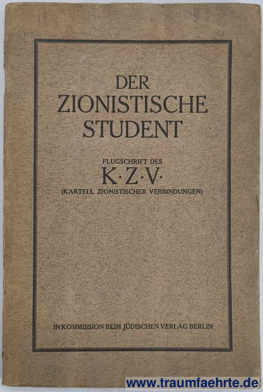 Alte Bücher etc. > Religion > JudaicaKartell zionistischer Verbindungen: Der zionistische Student. Flugschrift des KZV. [ Permalink ]>>> Artikel-Nr: 39351 <<< Berlin, Jüdischer Verlag (in Kommission) o.J., 64 S., OBro., mit Beiträgen von Egon Rosenberg, Richard Lichtheim, Gustav Krojanker, Elias Auerbach, Eugen Täubler, William Unna und Hans Bloch, Redaktion Gustav Krojanker Zustand: Seitenränder minimal stockfleckig Preis: 18,00 €