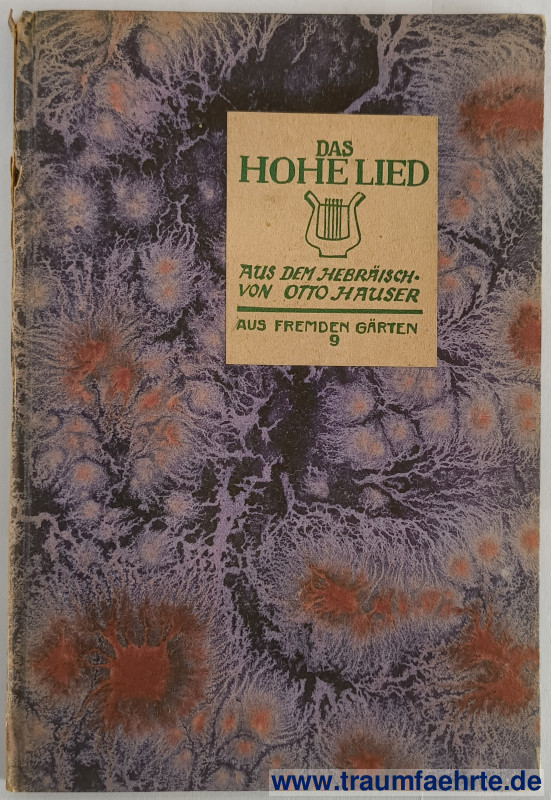Alte Bücher etc. > Religion > JudaicaHauser, Otto: Das hohe Lied. [ Permalink ]>>> Artikel-Nr: 39356 <<< Weimar, Alexander Duncker 1921 (= Aus Fremden Gärten 9), 3.–4. Tsd., 24 S., marmorierter Pp. Zustand: Rücken geklebt, Seiten etwas wellig Preis: 8,00 €