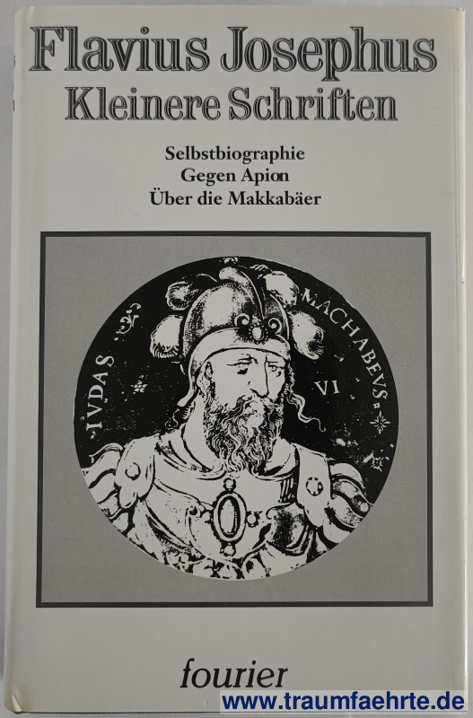 Alte Bücher etc. > Religion > JudaicaJosephus, Flavius: Kleinere Schriften. Selbstbiographie. Gegen Apion. Über die Makkabäer. [ Permalink ]>>> Artikel-Nr: 39358 <<< Wiesbaden, Fourier 1993, 1. Aufl., übersetzt und mit Einleitung und Anmerkungen versehen von Heinrich Clementz, 248 S., schwarzer OLn. mit illustr. OU, ISBN 3-925937-69-1 Zustand: ordentliches Exemplar Preis: 16,00 €