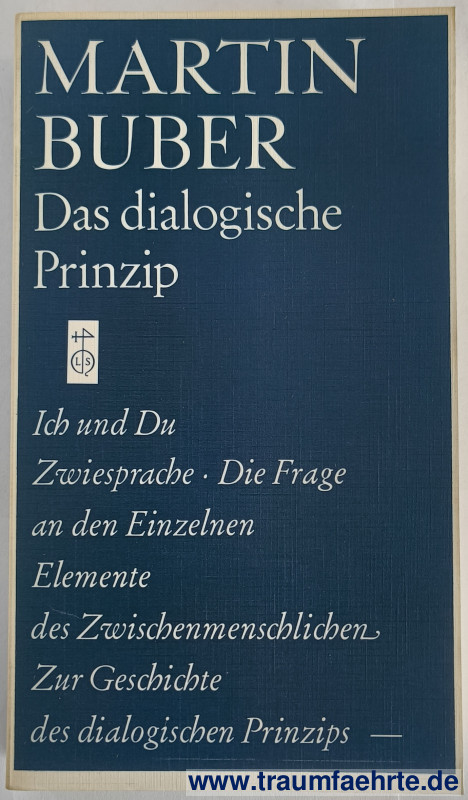 Alte Bücher etc. > Religion > JudaicaBuber, Martin: Das dialogische Prinzip. [ Permalink ]>>> Artikel-Nr: 39360 <<< Heidelberg, Lambert Schneider 1979, 4. Aufl., 325 S., blaue OBro.; enthält: Ich und Du. Zwiesprache. Die Frage an den Einzelnen; Elemente des Zwischenmenschlichen. Zur Geschichte des dialogischen Prinzips., ISBN 3-7953-0016-9 Zustand: ordentliches Exemplar Preis: 12,00 €