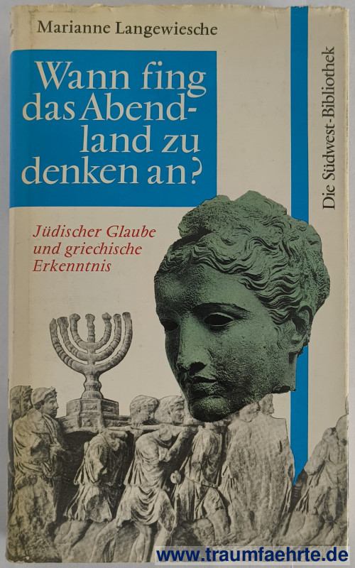 Alte Bücher etc. > Religion > JudaicaLangewiesche, Marianne: Wann fing das Abendland zu denken an? Jüdischer Glaube und griechische Erkenntnis. [ Permalink ]>>> Artikel-Nr: 39365 <<< München, Südwest Verlag 1970 (= Die Südwest-Bibliothek. Hrsg. von Kurt Seeberger), mit teils ganzseitigen Abbildungen, 221 S., Orig.-Verlagspostkarte beiliegend, goldgeprägt. weißer OLn. mit von Roger Seitz farb. illustr. OU Zustand: Schutzumschlag etwas bestoßen, sonst ordentliches Exemplar Preis: 9,00 €