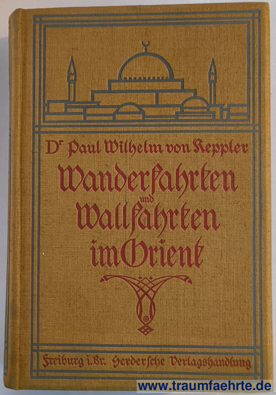 Alte Bücher etc. > Orts- & Landeskunde > Naher OstenKeppler, Paul Wilhelm von: Wanderfahrten und Wallfahrten im Orient. [ Permalink ]>>> Artikel-Nr: 39382 <<< Freiburg im Breisgau, Herdersche Verlagshandlung 1909, 6. Aufl., mit Titelbild, 193 Abbildungen und 2 Karten zum Ausklappen, 540 S., 1 Blatt Verlagswerbung, mehrfarb. illustr. OLn., gr. 8° Zustand: etwas verschmutztes, sonst ordentliches Exemplar Preis: 32,00 €