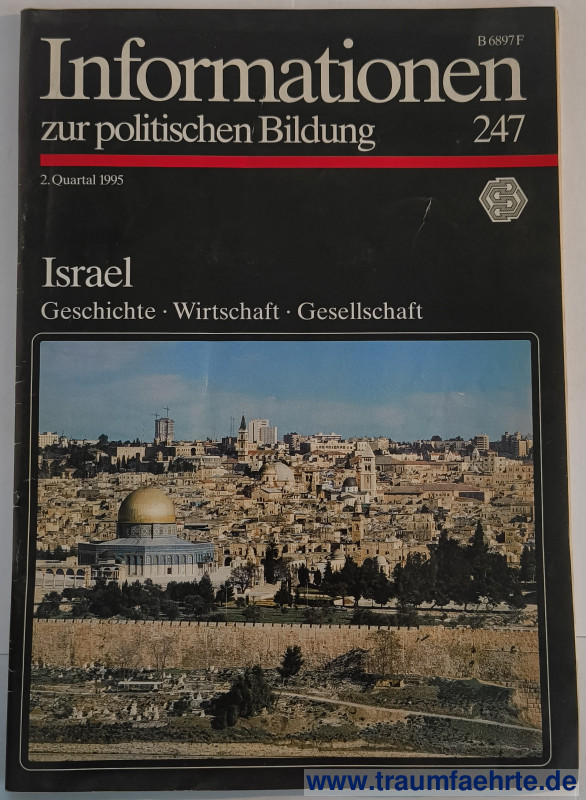 Alte Bücher etc. > Religion > JudaicaBundeszentrale für politische Bildung (Hrsg.): Israel. Geschichte. Wirtschaft. Gesellschaft. [ Permalink ]>>> Artikel-Nr: 39395 <<< München, Francis (Druck) 1995 (Informationen zur politischen Bildung Heft 247, 2. Quartal 1995, B 6897 F), mit Abbildungen und farb. Karten, 81 S., farb. illustr. OBro., 4°, ISSN 0046-9408 Zustand: Broschur etwas berieben und verschmutzt Preis: 6,00 €