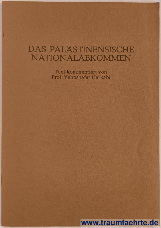 Alte Bücher etc. > Religion > JudaicaHarkabi, Yehoshafat: Das palästinensische Nationalabkommen. [ Permalink ]>>> Artikel-Nr: 39406 <<< Stuttgart, Seewald 1974, entnommen der 2. Ausgabe des Verfasser’s „Palästina und Israel“, 12 unpaginierte Blätter, braune OBro. Zustand: ordentliches Exemplar Preis: 7,00 €
