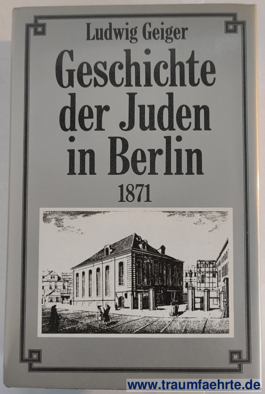 Alte Bücher etc. > Religion > JudaicaGeiger, Ludwig: Geschichte der Juden in Berlin. Festschrift zur zweiten Säkular-Feier. Anmerkungen, Ausführungen, urkundliche Beilagen und zwei Nachträge (1871–1890). [ Permalink ]>>> Artikel-Nr: 39412 <<< Leipzig, Zentralantiquariat der DDR 1988, Reprint der Originalausgabe von 1871–1890 mit Vorwort von Hermann Simon; XLII, 207, 357, [185–]233, [29-]65 S., silbergeprägt. schwarzer OLn mit illustr. OU, ISBN 3-7463-0094-0 Zustand: ordentliches Exemplar Preis: 9,00 €
