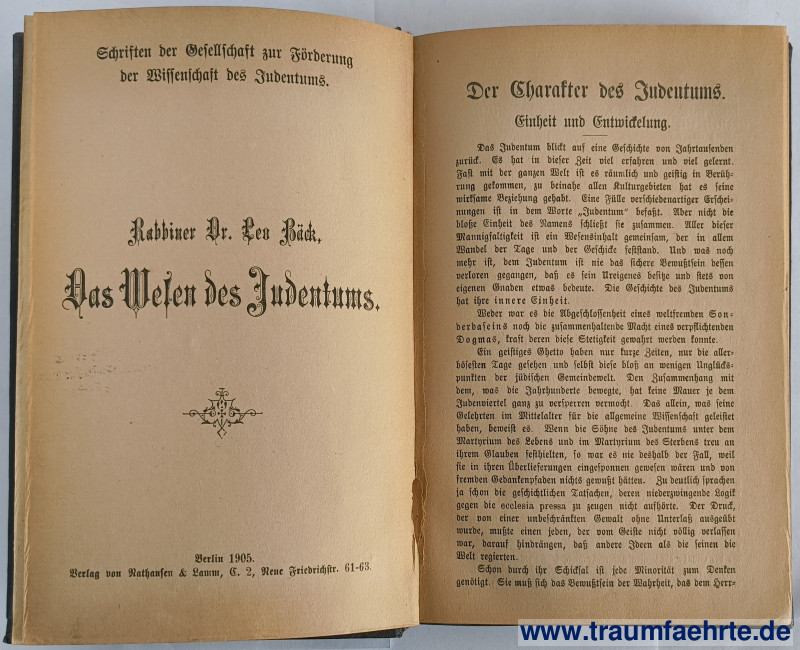 Alte Bücher etc. > Religion > JudaicaBäck, Leo: Das Wesen des Judentums. [ Permalink ]>>> Artikel-Nr: 39417 <<< Berlin, Rathausen & Lamm 1905. Erstausgabe, 167 S., neu gebunden in schwarzem Ln. Zustand: Einband leicht verschmutzt, Stempel auf Vorsatz, davor Reste eines eingeklebten Bibliothekszettels, Seiten gebräunt Preis: 790,00 €