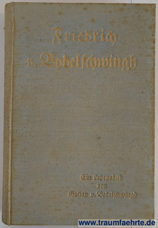 Alte Bücher etc. > Religion > BiographienBodelschwing, Gustav von: Friedrich v. Bodelschwing. Ein Lebensbild. [ Permalink ]>>> Artikel-Nr: 39466 <<< Bethel bei Bielefeld, Anstalt Bethel ca. 1930, durchgesehene Aufl., mit Titelbild, 421 S., goldgeprägt. OLn. Zustand: Einband stockfleckig, Stempel der Versöhnungskirche Dresden-Striessen auf Titelblatt, Vorbemerkung, Inhaltsverzeichnis und hinterem Einbanddeckel, Seitenränder etwas gebräunt Preis: 14,00 €