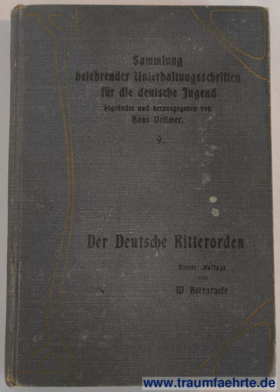 Alte Bücher etc. > Religion > ChristentumHolzgraefe, Wilhelm: Der deutsche Ritterorden. Unter Benutzung der Quellenschriften dargestellt. [ Permalink ]>>> Artikel-Nr: 39514 <<< Berlin, Hermann Paetel 1908 (= Sammlung belehrender Unterhaltungsschriften für die deutsche Jugend Band 9), 2., durchgesehene Aufl., 4.–6. Tsd., mit Titelbild und Karte zum Ausklappen, 197 S., 4 Blatt Verlagswerbung, goldgeprägt. blaugrauer OLn. Zustand: Einband und einzelne Seiten etwas fleckig, Kartenecke geknickt Preis: 12,00 €