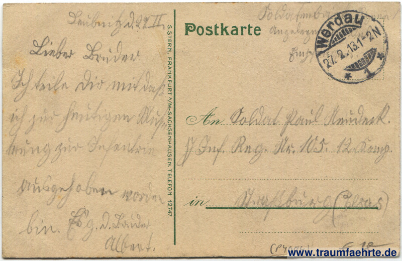 Stempel: Werdau, * 1 *, 27.2.13. 1–2 N