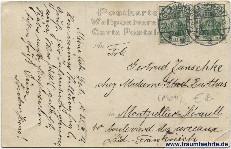 Beschriftung hinten: Postkarte, Weltpostvere[in], Carte Postale, An … in …