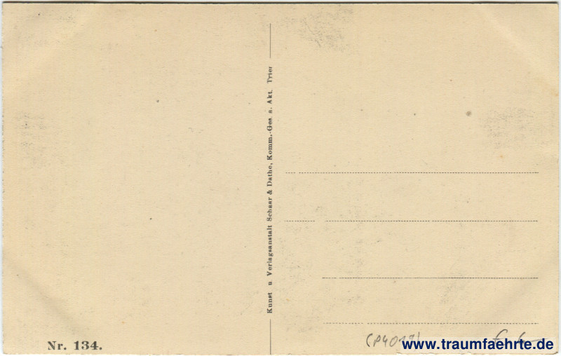 Inscription back: Nr. 134. Kunst u. Verlagsanstalt Schaar & Daathe, Komm.-Ges. a. Akt. Trier