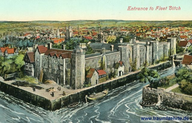 farbig glänzend – damals oberirdischer Einfluss von der Themse zum River Fleet (Fleet Ditch) mit Holzboot