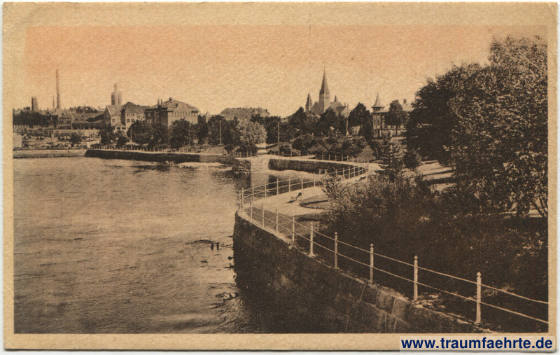 Schlagworte: Tammerkoski, Stromschnellen, Ufer, Zäune, Parks, Schornsteine, Kirchen, Türme