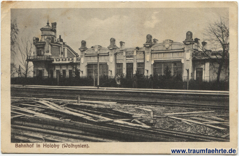 Beschriftung vorne: Bahnhof in Holoby (Wolhynien).