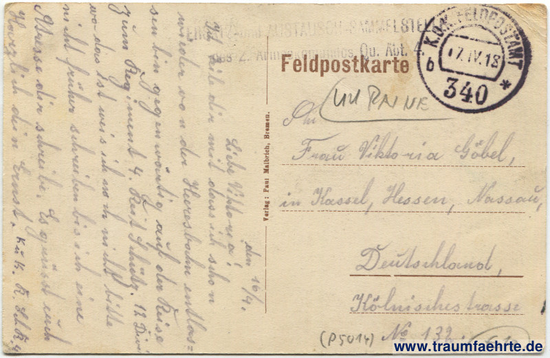 Stempel: K.u.k. Feldpostamt 340, b *, 17.IV.18