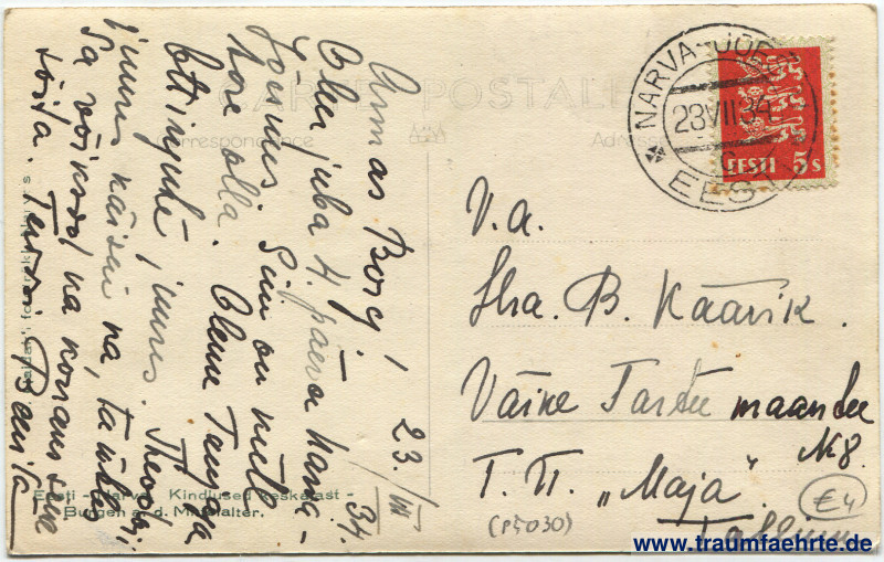 Postmark(s): Narva-Jõesuu, Eesti, 23.VII.34
