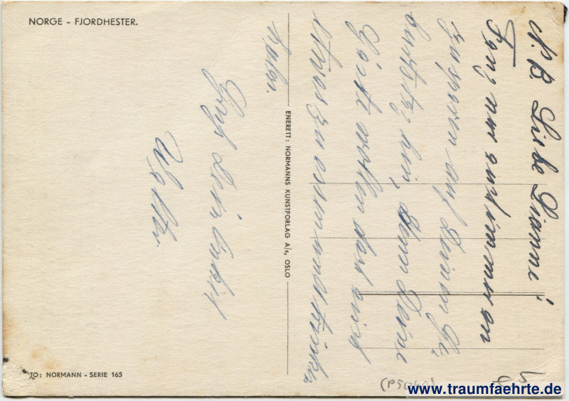 Beschriftung hinten: Norge – Fjordhester. [Fot]o: Normann-Serie 165, Enerett: Normanns Kunstforlag A/s, Oslo