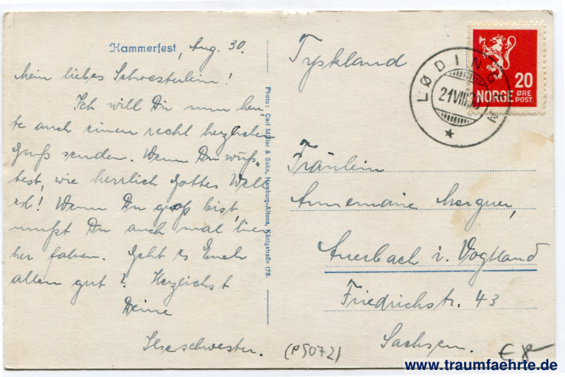 Beschriftung hinten: Hammerfest, Photo: Carl Müller & Sohn, Hamburg-Altona, Königstraße 178.
