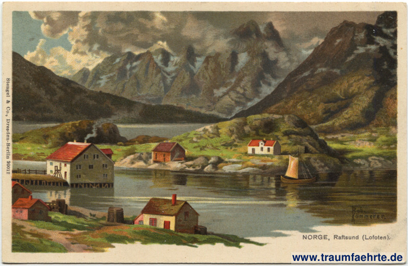 – Details – Year: ca. 1895 Postal state: postally unused Inscription front: Norge, Raftsund (Lofoten). Rob. Kämmerer. Stengel & Co., Dresden-Berlin 20012 Inscription back: Postkarte – Brev-Kort – Correspondenzkarte, Cartolina postale – Post card, Brefkort – Carte postale, Union postale universelle – Weltpostverein – Unione postale universale Postmark(s): none Please note: