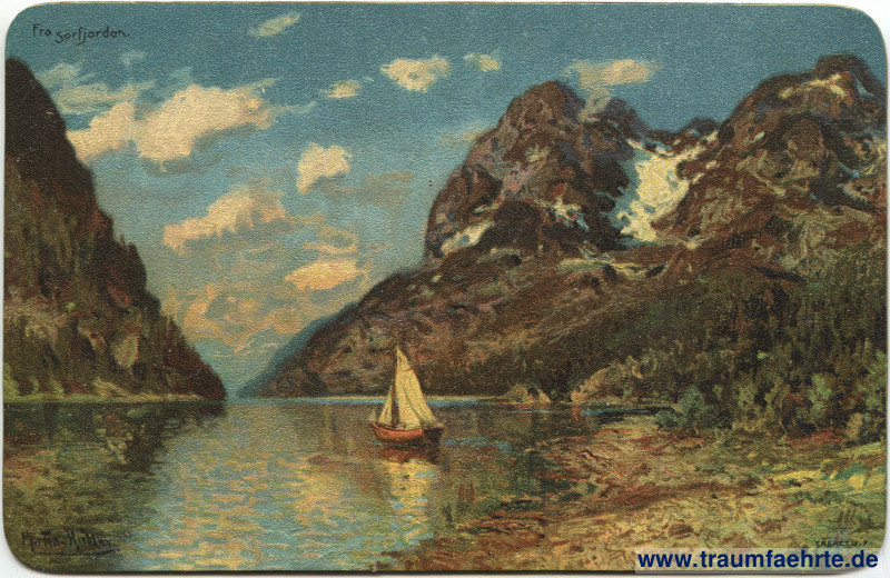 Schlagworte: Künstlerkarten, Boote, Segelboote, Berge, Schnee, Fjorde, Atlantik