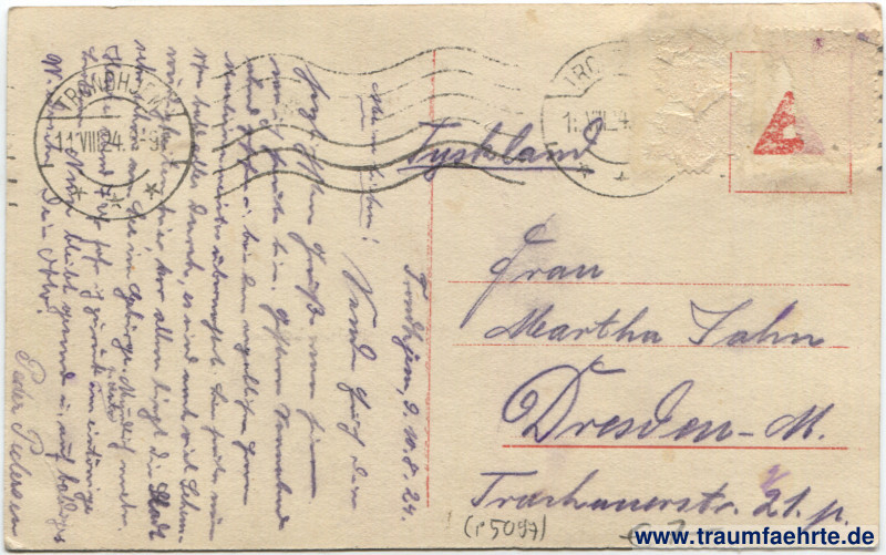 Postmark(s): 2x Trondhjem, * * *, 11.VIII 24. 8–9F