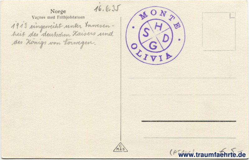 Inscription back: Norge, Vagnes med Frithjofstatuen, C M & S