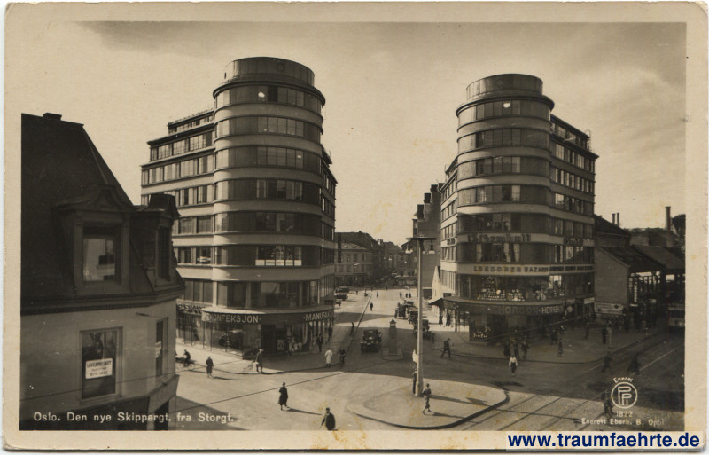 Postcard Storgata / Skippergata corner in Oslo / Kristiania city [ Permalink ]