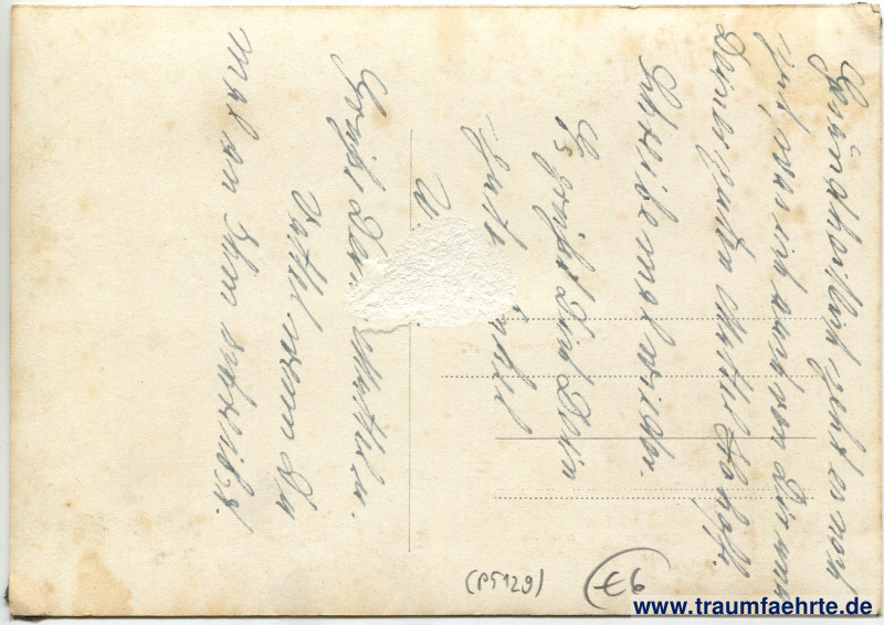 Zustand: Rand minimal beschädigt und mit Albumspuren, Rückseite etwas fleckig und beschädigt, beschrieben obwohl ungelaufen