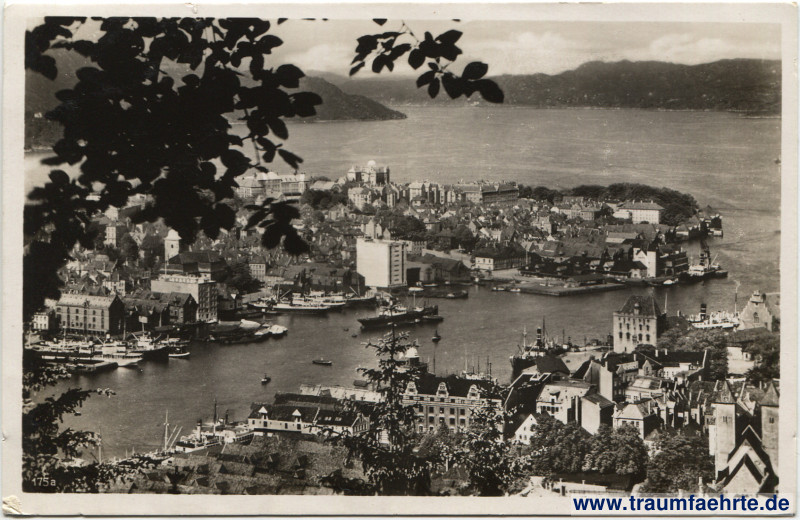 Schlagworte: Panorama, Häfen, Buchten, Fjorde, Atlantik, Dampfschiffe, Schiffe, Boote, Hochhäuser, Berge