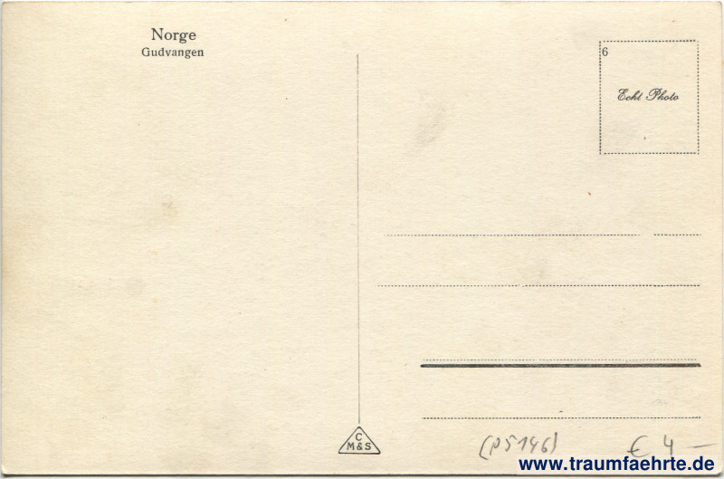 Inscription back: Norge. Gudvangen, C M & S, 6, Echt Photo