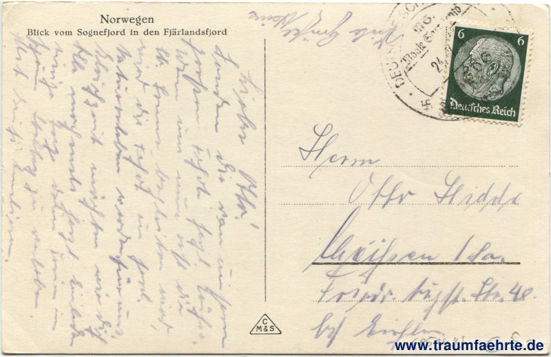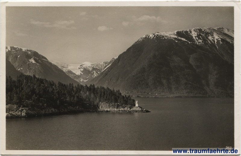 Schlagworte: Fjorde, Leuchttürme, Buchten, Felsen, Berge, Schnee, Wald, Kraft durch Freude, Nationalsozialismus, Schiffspost